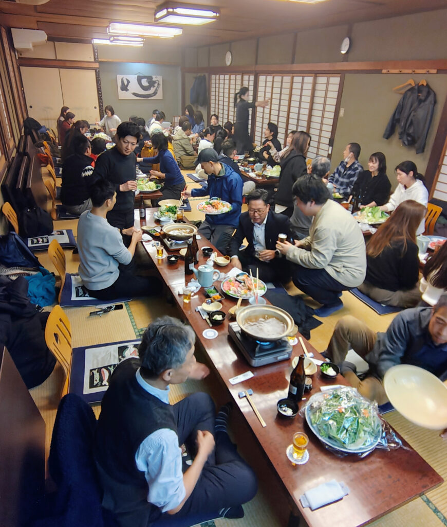 2024.12.12 社内行事:【忘年会】 2025年12月15日 最終更新日時 : 2025年12月16日 asida.co毎年恒例の忘年会。社員数が昨年より増え、参加人数記録をさらに更新しました。すき焼き、寄せ鍋と皆で鍋を囲みました。通例のビンゴ大会も参加者増加でとても盛り上がりました。